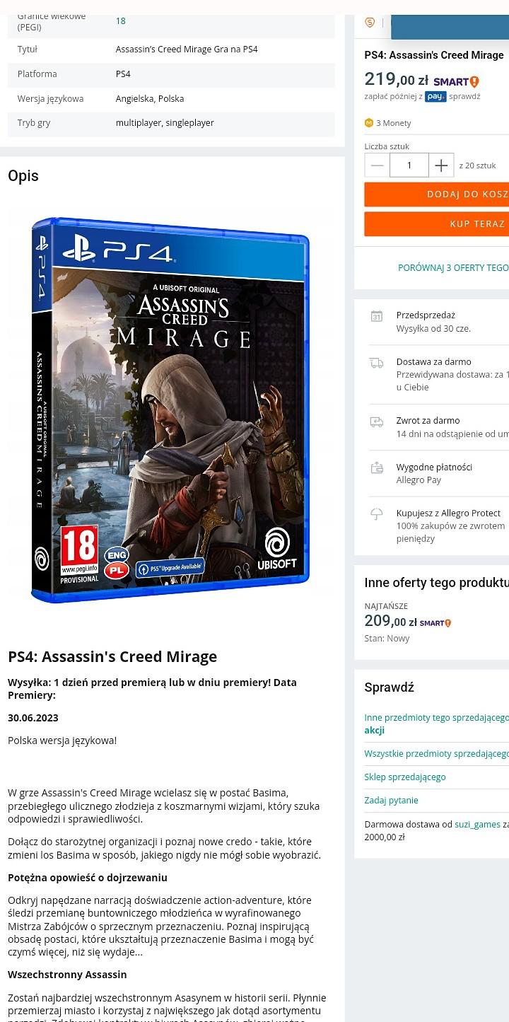 O próximo jogo Assassin’s Creed – Assassin’s Creed Mirage – está programado para ser lançado ainda este ano. Quando este ano, ainda não sabemos. A Ubisoft ainda não divulgou uma data de lançamento para o jogo para PC , PS4, PS5, Xbox One , Xbox Series X , Xbox Series S ou Amazon Luna, no entanto, rumores e relatórios anteriores sugeriram que seria lançado neste verão ( do hemisfério norte). Agora um varejista polonês listou o jogo para uma data de lançamento no verão ( do hemisfério norte).